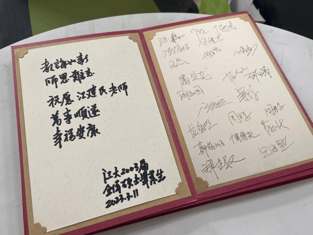 最后2003届研究生班长沈法代表全班校友总结发言,表达对导师们的崇敬之心,培育之恩,也表达了对母校的赤子之心,自豪之荣;强调作为江南大学研究生校友们,理当踔厉奋发,勇攀高峰,与母校同行进步,同频发展。会后师生共进晚餐,促膝相谈,将二十年来的感怀和思念融化在杯水中倾泻而出。第二天,部分校友代表回到青山湾,重走上学路,远观青山,近察树木,复盘青山校区,感叹沧海桑田;追忆似水年华,再叙青山往事。相聚时难别亦难,非凡电子娱乐平台