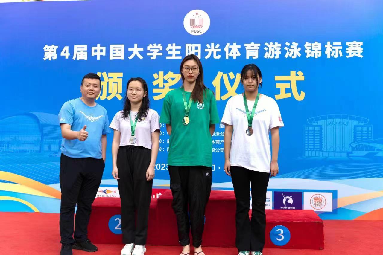 在全国高校普通大学生游泳比赛的最高级别赛事中,我院21级设计学研究生宋婉宁,在个人优势项目女子甲组50m自由泳中凭借丰富的大赛经验和强大的心理素质,斩获金牌;并获4x100米自由泳接力、4x100米混合泳接力中全国第四名的成绩。