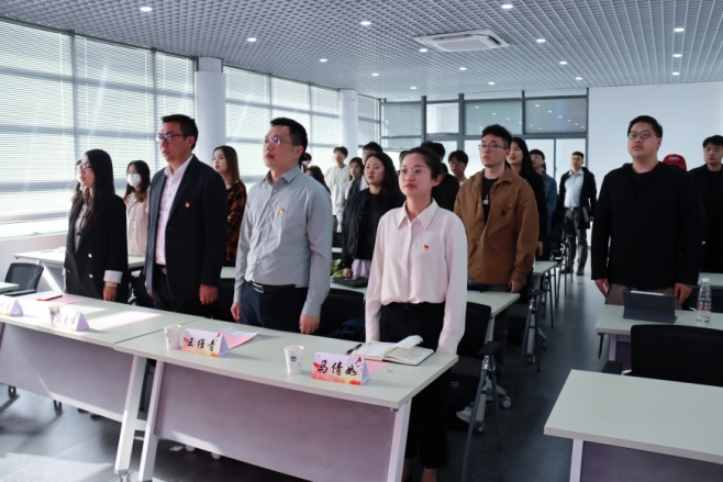党委书记王维青、专职组织员陈祥洁、党建辅导员马倩如、滕影以及42名培训班学员参加仪式。开班仪式由培训班班主任滕影主持。