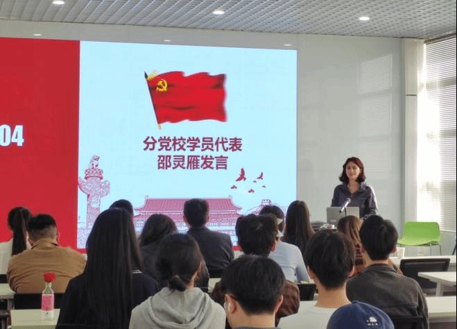 来自第45期分党校的学员代表邵灵雁同学发言。她首先代表培训班全体学员感谢学校、学院提供的宝贵学习机会,感谢授课老师们的辛勤培育指导,使学员们能够更好地向合格、优秀的共产党员看齐。随后她结合新时代的青年担当之为分享了自己的入党初心,并代表全体学员庄严承诺:将自觉自律,深入学习党的理论知识;坚定信仰,充分发挥学生党员的先锋模范作用;握技强能,积极投身社会践行青春使命。