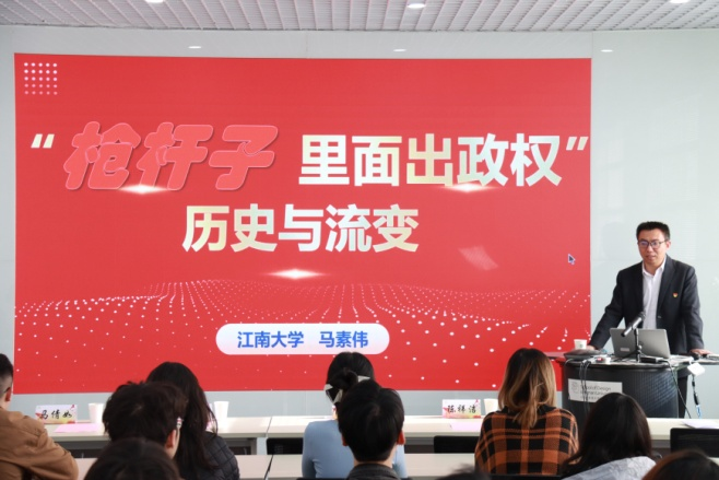江南大学发展规划与学科建设处副处长马素伟以《“枪杆子里面出政权”:历史与流变》为题为分党校学员带来党课第一讲。他首先结合党的二十大报告的关键词“开创国防和军队现代化新局面”分析了“枪杆子里面出政权”这段奋斗史的现代意义,从没有枪杆子的“痛悟”、枪杆子理论的“提出”、武装夺取政权“道路”、枪杆子出政权的“辩证法”等四个板块带领学员们一同回顾了在改变中国命运的解放战争中,共产党战胜国民党最终取得中国革命最后胜利的浴血奋战之路,并深刻剖析胜利原因“关键不在枪杆子硬不硬,而在谁站在人民的立场代表人民”。他也借此与在场学员重温共产党人“为中国人民谋幸福,为中华民族谋复兴”的初心和使命,勉励学员们要时刻牢记习近平总书记对青年一代的嘱托,把个人的理想追求融入党和国家事业之中,牢固树立为人民而奋斗的目标,并在理想的指引下笃实前行,让青春年华在为国家、为人民的奉献中焕发出绚丽光彩。马处长的党课内容翔实、务实生动,使得同学们热情高涨,受益匪浅。在热烈的掌声中,第一讲党课圆满结束。