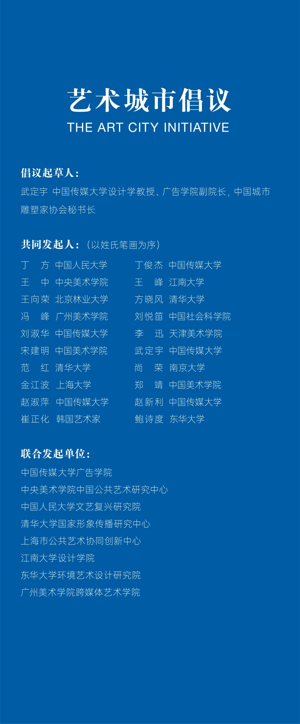 据悉,《艺术城市倡议》由中国传媒大学设计学教授、广告学院副院长、中国城市雕塑家协会秘书长武定宇起草,由20位国内外专家学者和7所高校、机构共同发起。作为该倡议的共同发起人,非凡电子娱乐平台
