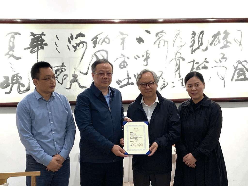在全体与会人员见证下,朱庆葆为鲁晓波颁发了江南大学“设计学”一流学科建设指导专家聘书。