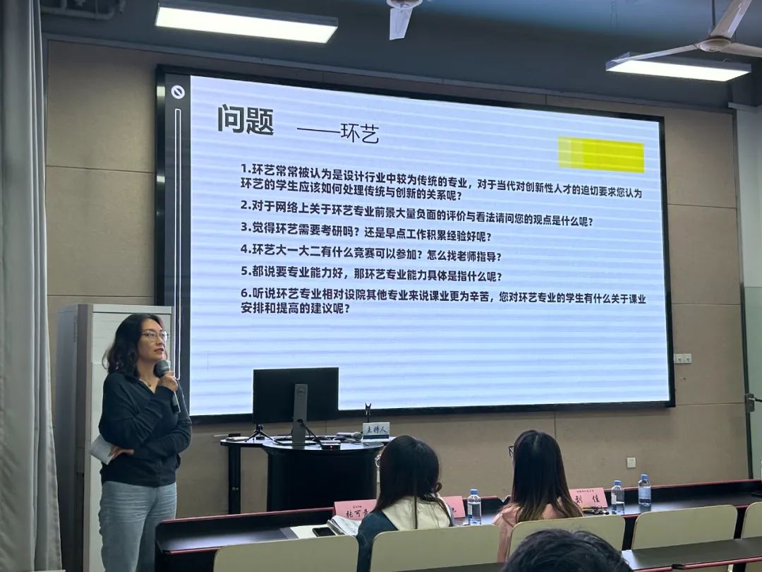 第八届系主任面对面活动(环境设计系专场)顺利开展。这次活动邀请了环境设计系系主任刘佳老师,以及张可意、广茂池两位学姐进行经验分享与互动交流。