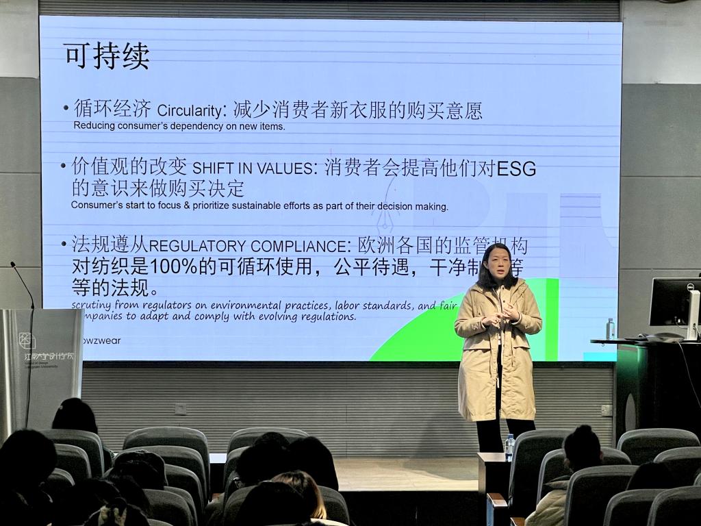 签约仪式后,林燕丽和晏家红分别以“服装的价值创造”和“如何做好AI时代的设计”为主题为服装系师生带来了精彩的讲座,重点分享了传统服装行业面临的挑战和AI新技术为行业带来的影响,并从可持续化角度提出了对服装行业未来发展新趋势的思考和理解。