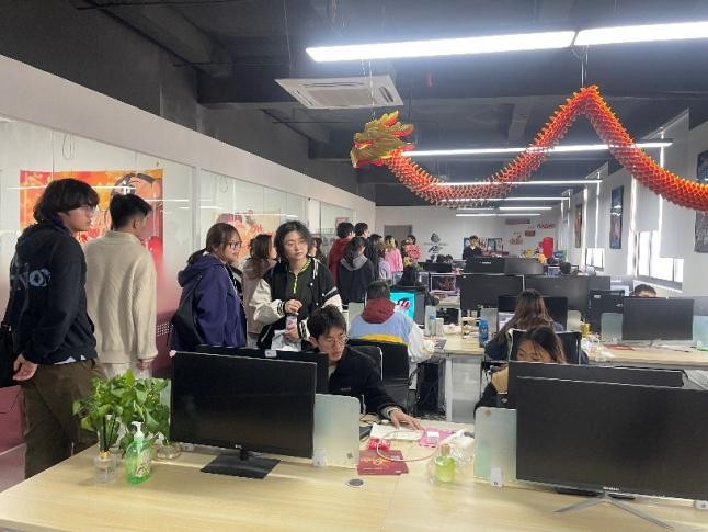 下午对姑苏区代表性文化企业进行参访交流,第一站来到了5166产业园区,同学们在老师的带领下对以数字+文化为企业特色的“木方文化”进行了参观,并与企业负责人进行研讨与交流。“木方文化”负责人根据当前的环境和就业形势向同学们分享了大家在学习过程中应该要注重的问题。如要对专业保有热爱,训练扎实的基本功。企业代表认为现在有很大一部分的学生虽然作品集里有部分闪光点,但是在进入公司之后,产出的质量无法跟上企业的要求,企业还需要花很大的精力再重新培养。这一问题也是目前整个行业的痛点。由于AI的冲击,目前很多企业都对项目进行了收缩,这可能使得很多公司在招人和用人时会更加谨慎,这时同学们基本功的提升就显得尤为重要。第二个问题是同学们应该要在学习的过程中提高自己的认知和眼界,设计行业需要跨专业沟通合作的能力,需要博闻强识了解不同领域的知识和问题,然后再按图索骥地把知识点综合到设计之中。第三个问题则是同学们要培养自己的团队合作能力,设计不是一个靠单打独斗就能完成好的事情,需要团队成员各抒己见,畅所欲言,集百家之长,才能完成好设计的每一个流程。