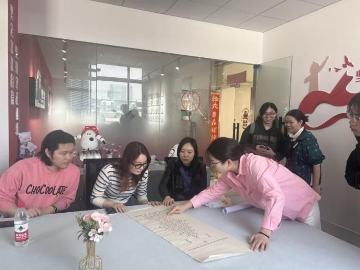 3月22日我院数字媒体艺术专业本科生在苏州市古城保护与数字创意产业科技镇长团挂职团员章洁老师与姑苏区组织部、人社局等单位的对接组织下,前往苏州姑苏区开展了一场别开生面的实践教学活动,数字媒体整合创新课程任课老师王馨、陆菁带队同行。姑苏区人社局范杰在姑苏区人才驿站、科技镇长团之家“右见”为同学们讲解了姑苏区的创业就业政策,“木方文化”、“绣娘丝绸”等企业负责人邀请各位老师及学生代表参观了产品的设计与生产流程,并与师生代表座谈交流。