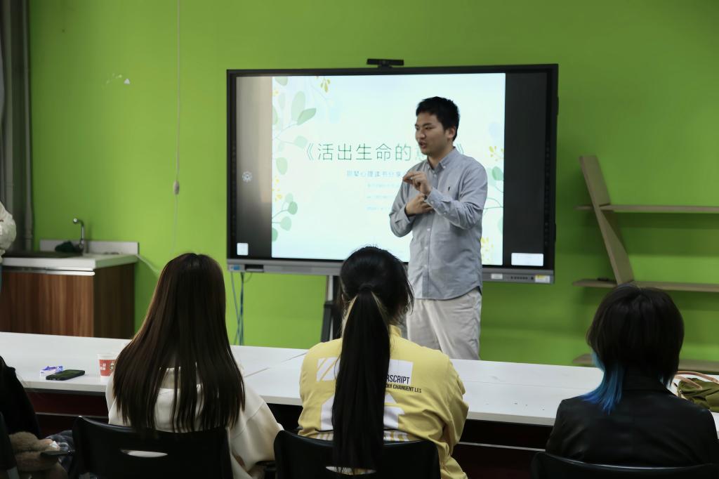 A205热烈开展。十多位同学参与了这次活动。活动伊始,冯志远老师首先对书本《活出生命的意义》进行了导读,启发同学对生命的意义展开思考。接下来,彭韵霖同学从书本简介、原文精选、心得感想三个方面全方位介绍了这本书籍,使同学们了解意义疗法的基本知识,了解追寻人生意义的三种途径。