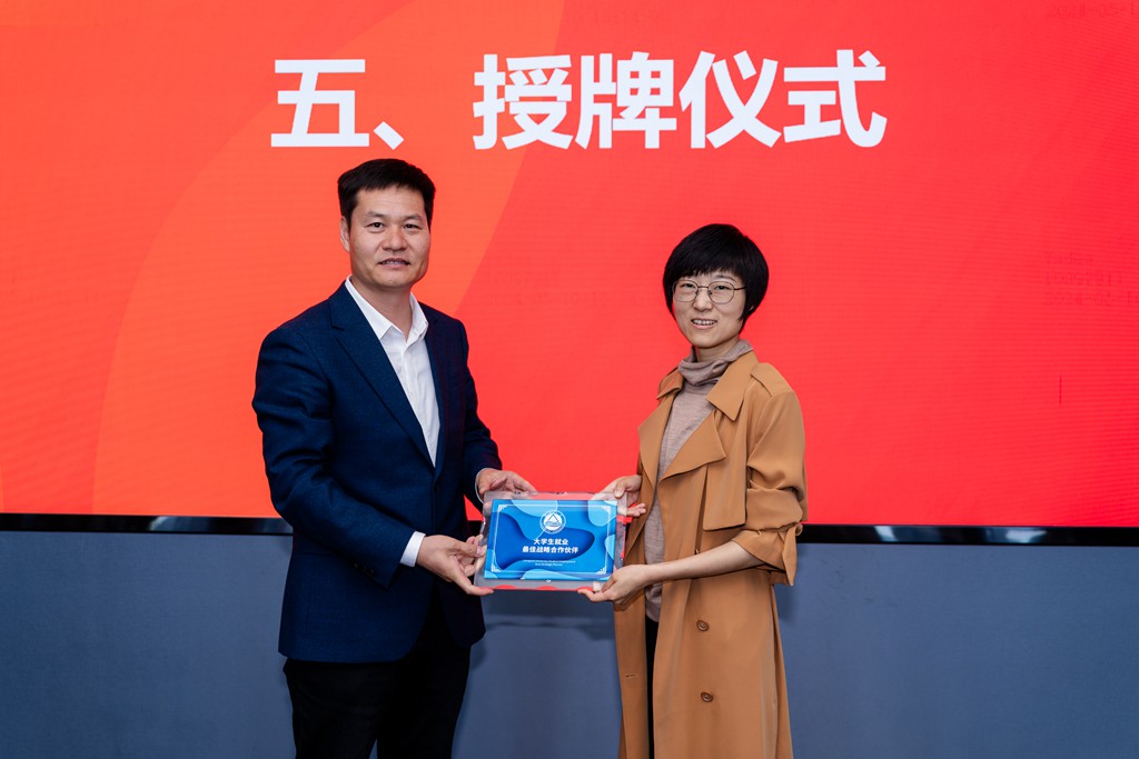 副院长胡伟锋与雅迪集团人力资源管理中心总助俞萍进行授牌仪式。授牌仪式的顺利举行,不仅是江南大学与雅迪集团合作的一个新的起点,也是双方共同发展的一个新的契机,为社会培养更多优秀人才,为产业发展注入新的活力和动力。