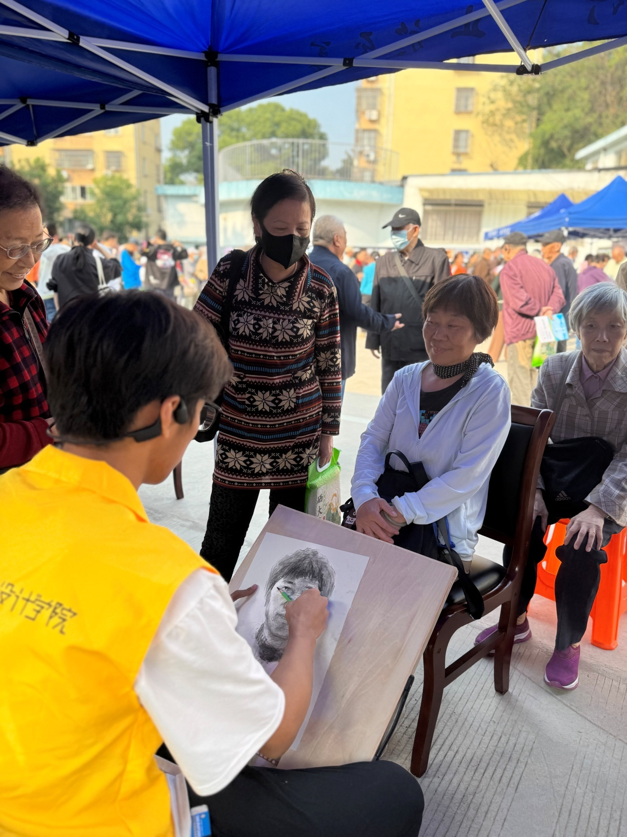 的志愿者们就陆续抵达活动现场。他们热情地在老同志们中间穿梭,悉心做好服务引导工作,为老人们送上最真挚的节日祝福。与此同时,另一批志愿者则拿起画笔,开启一场独特的艺术创作之旅。他们以人物速写、头像素描、肖像漫画等多种形式,为老同志们绘制肖像,在重阳佳节送上这份饱含深情的礼物,留作纪念。