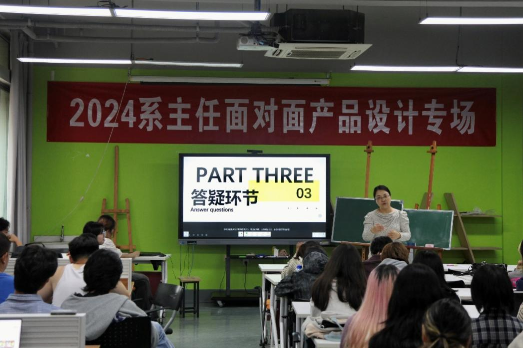 活动中的提问答疑环节,同学们积极发问,提出了自己近期在学习生活中遇到的问题,学长学姐与系主任耐心解答,并为如何寻找设计思路这一热点问题做出详细论述,不仅如此,学长学姐根据以往经验也推荐了许多优秀设计网站,鼓励同学们在做设计时围绕灵感点整合创新,遇到瓶颈与困难时调整状态,找出原因,对症下药。同时不断打磨方案,打磨自身能力。