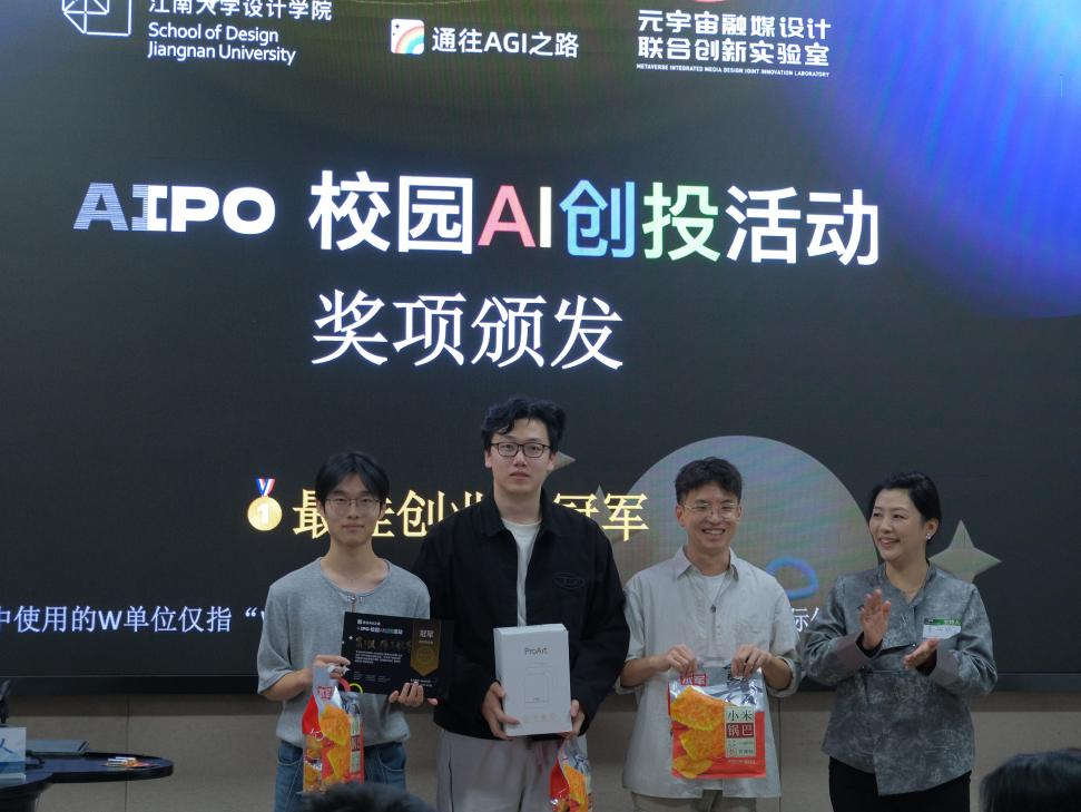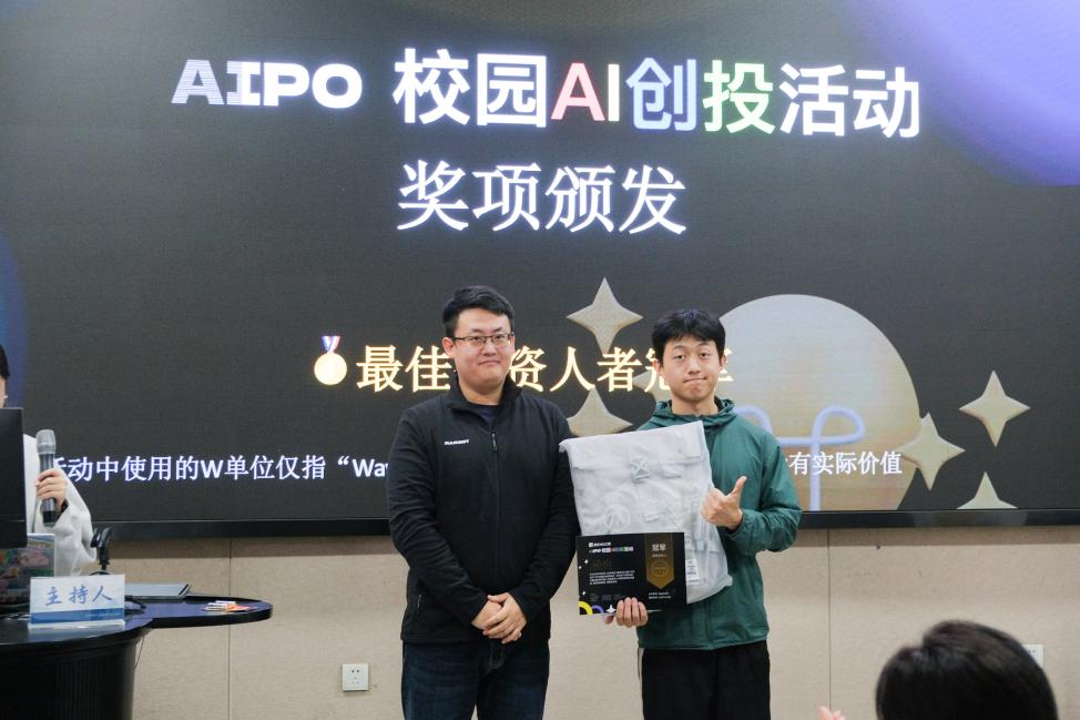 三组最佳创业者冠亚季军分享创业方案内容。 大赛奖品由AIPO主办方提供。同时三次抽奖环节贯穿本次活动,活动奖品由吴祐昕教授个人、中国领先的视觉内容版权服务商拍信和休闲食品新锐领军企业水军锅巴共同赞助。