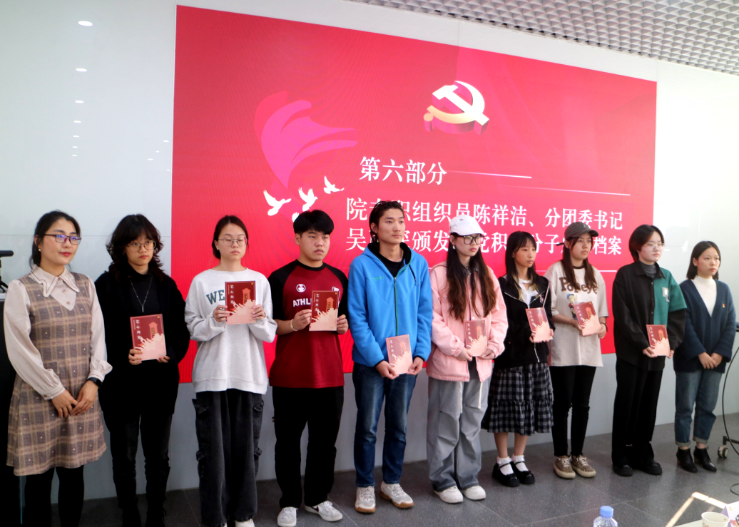 一份入党申请书,就是一份对党的承诺;一份积极分子成长档案,就是一份向党组织努力靠拢的证明。本次培训班采取线上理论学习与线下活动打卡的双线培训制度,线下打卡依托“入党积极分子成长档案”进行,学员们参加培训班内的必修活动和培训班外的党团活动、志愿服务等都可登记在册。在这一环节,陈祥洁和吴雨琛向培训班学员代表颁发入党积极分子成长档案,向希望这份档案能够承载着每一位学员对党是赤诚衷心,也见证着他们向党组织努力靠近的坚实步伐。