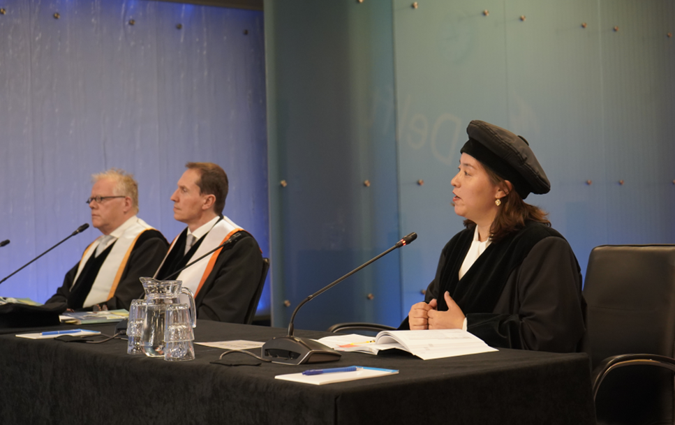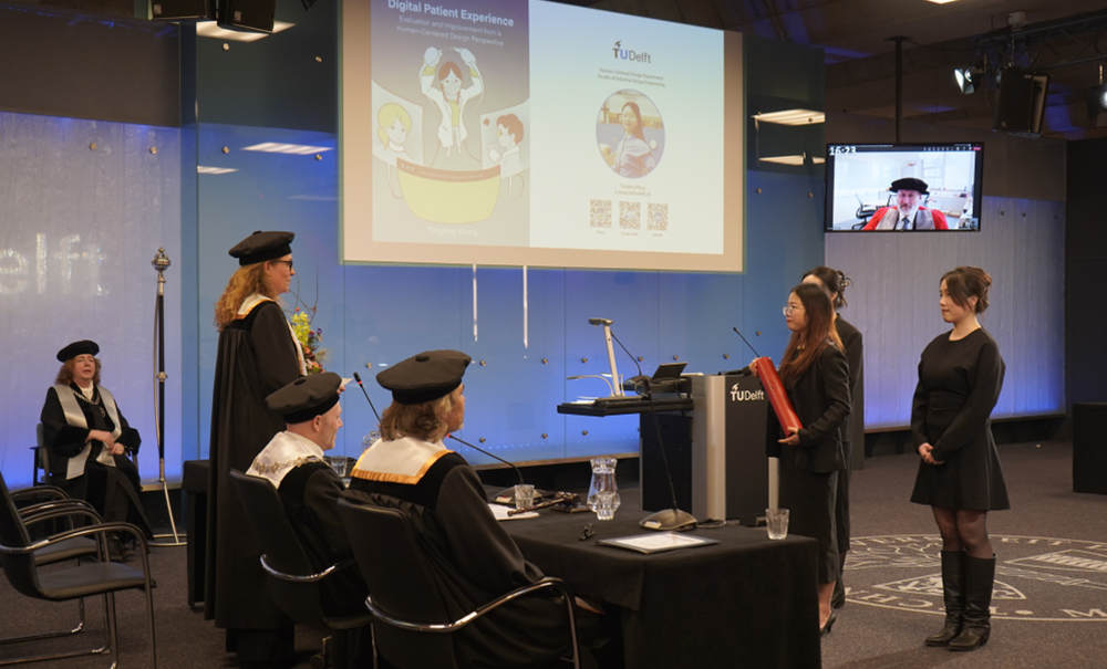 受荷兰代尔夫特理工大学Richard Goossens 教授邀请,肖东娟副教授作为博士答辩委员参加了江南大学与代尔夫特理工大学联合培养的博士王婷婷的博士论文答辩,与英国剑桥大学的John Clarkson教授、荷兰代尔夫特理工大学Daan Eijk教授、Peter Desmet教授等健康医疗领域的专家学者共同作为答辩委员参加答辩,结合博士课题开展讨论和学术问答,并最终审议确定授予博士学位。答辩过程参照荷兰的学术传统,严肃庄重又富有仪式感。