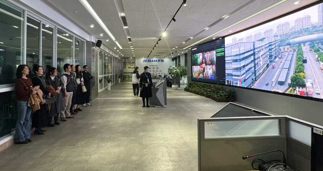 一行首先在创新研究院张银锋院长和主创先行设计师李小伟的陪同下参观了老板全球烹饪艺术中心、未来工厂和智能物流仓储中心。