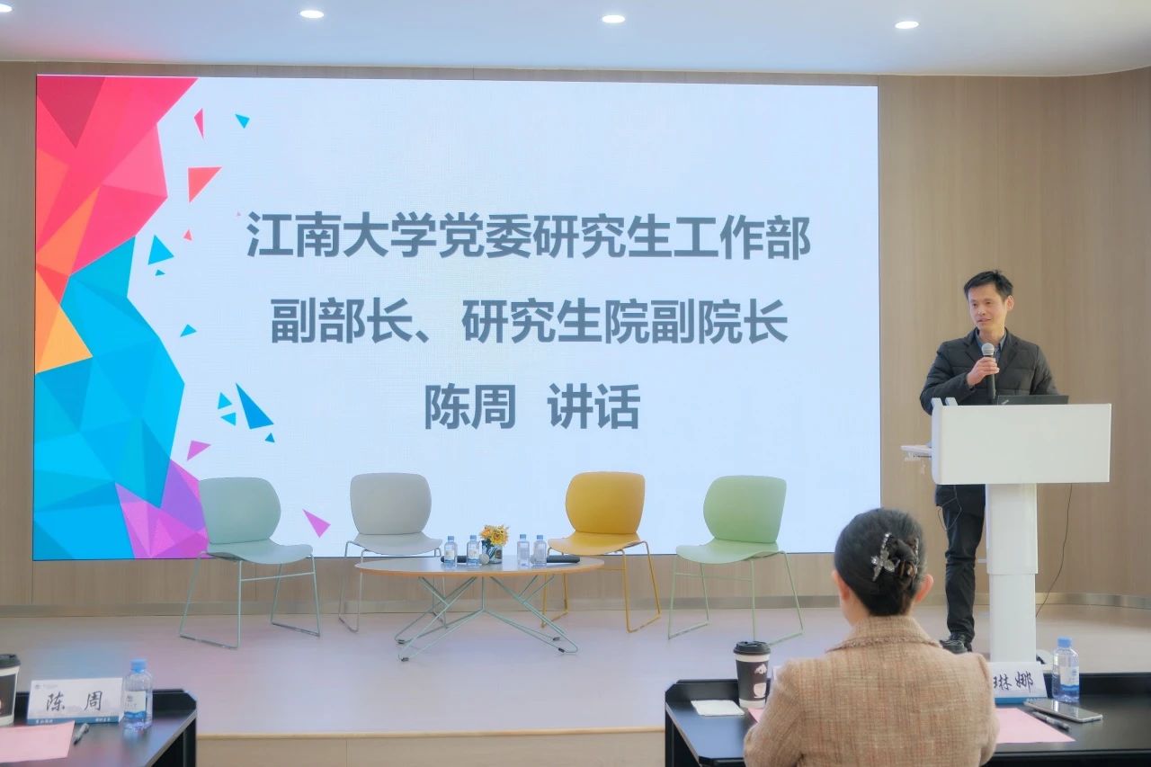 江南大学党委研究生工作部副部长、研究生院副院长陈周讲话