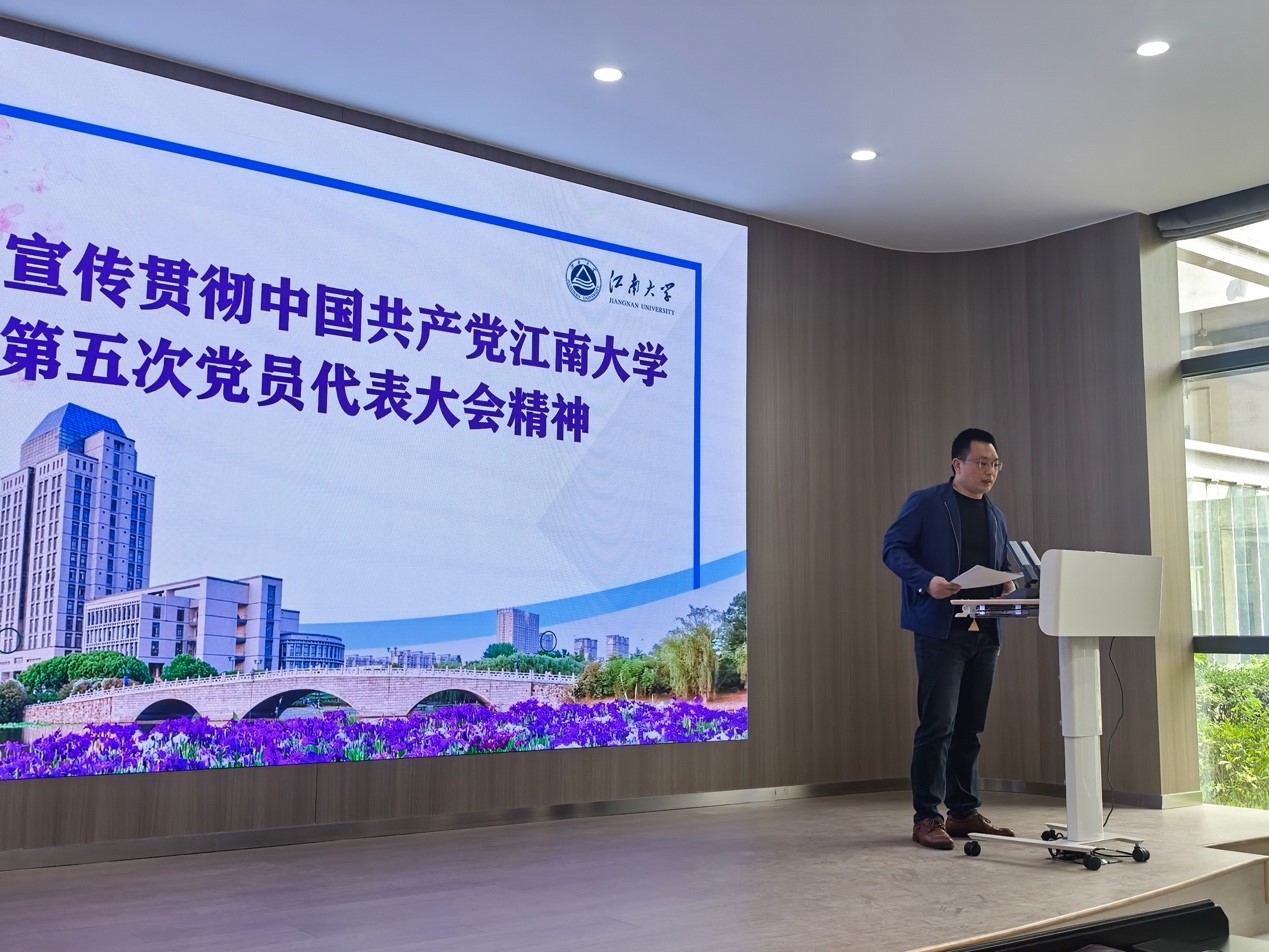 会上,王维青首先进行《中国共产党江南大学第五次党员代表大会会议精神》学习,重点领学了学校第五次党代会提出的“六力任务”和“八大体系”建设内容,结合学院工作,他指出,全院教师要深入领会学校第五次党代会精神,准确把握未来发展方向,将会议精神学习转化为推动发展的行动指南,为学校学院改革发展做出积极贡献。