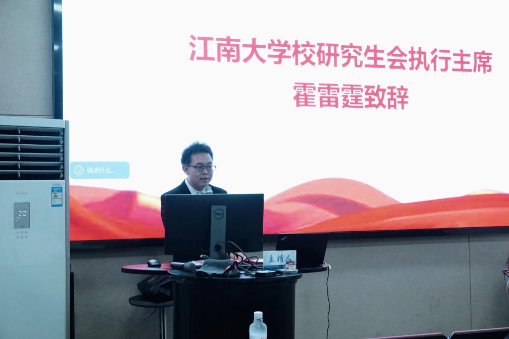 校研究生会执行主席霍雷霆率先登台致辞。在我国反法西斯战争胜利纪念年这一特殊历史节点,他的话语不仅回望了那段浴血奋战、捍卫家国的峥嵘岁月,更将先辈们不屈的抗争精神与新时代研究生的责任担当紧密相连。致辞中,霍雷霆着重强调,学院研究生会将以纪念年为契机,深入开展红色历史学习活动,以更严标准加强自身建设,用更实举措为广大研究生提供成长服务。在学院党组织的坚强领导与院团组织的有力支持下,新一届研究生会成员将带着对历史的敬畏、对未来的期许,以饱满的热情投身工作,在新征程上勇担使命、砥砺前行,为学院发展注入新活力,共同书写属于江南大学研究生学子们的奋斗篇章。