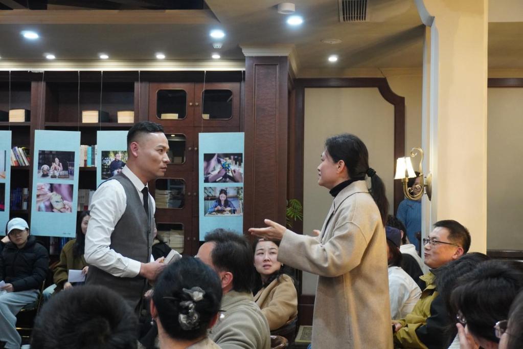 走出纪念馆,沉浸式话剧《纸・鸢 1945》在荣德生先生亲手创立的大公图书馆温情上演。抗日战火初熄、无锡百废待兴的 1945 年,通过戏剧艺术与本土红色历史的深度交融,在先生留下的历史空间中徐徐铺展。师生们手持专属 “大公图书馆借阅证”,瞬间 “穿越” 成为历史现场的亲历者 ——王维、吴祐昕化身《雷雨》中的经典角色,教师党员代福平、王金雅在《重逢制约》中演绎时代抉择,研究生党员代表在《玩偶之家》中传递觉醒力量。台上台下实时互动、情景交融,没有遥远的观望,只有深度的共情;没有枯燥的宣讲,只有鲜活的传承。这场以纪念荣德生先生诞辰 150 周年为重要底色的沉浸式体验,既彰显了双带头人党支部在党建工作形式创新上的探索勇气,更让红色历史可感可触、精神传承入脑入心,实现了 “看戏” 到 “悟魂” 的深刻转变,让先生 “立己立人、兴学兴邦” 的精神在互动演绎中代代相传。
