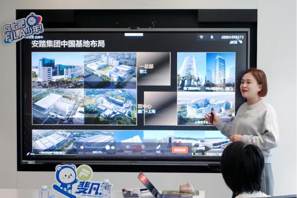 一行在企业代表的陪同下,参观了安踏大厦一楼品牌展示区,直观了解斐乐品牌发展历程及办公环境,近距离感受企业的发展理念与文化氛围,为后续校企深度合作和学生职业规划搭建坚实基础。