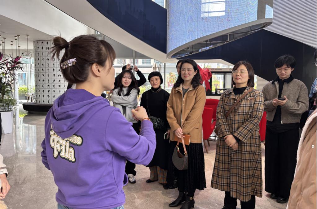 党委副书记兼副院长江琳娜、服装系主任邢乐、服装系教工党支部书记吴欣、服装系专业教师沈奕君、辅导员冯志远及学生代表一行赴上海安踏大厦,与安踏集团斐乐品牌开展访企拓岗促就业专项活动。斐乐人力资源部副总监杜海洋、人力资源经理孙亚青及江南大学校友代表热情接待,双方围绕品牌发展、人才培养、产学研融合等核心议题展开深入交流。