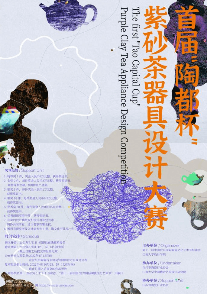 (一)参赛者每人至多3件作品设计稿。设计作品需要契合紫砂的特性,充分体现紫砂作为泡茶利器的显著性。投稿作品必须为本人/团队作品,投稿作品不得带有任何水印。