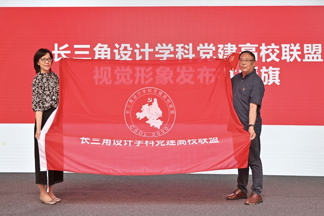 活动现场,长三角设计学科党建高校联盟视觉形象发布,联盟视觉形象以简化的长三角地图为主要图形,将现有八个高校在地图中以圆点形式展现,以党徽为中心,以党的红色为主色调,集合联盟全称汉字及拼音首字母CSDL等为主要视觉内容共同组成。张影陆为2021年联盟轮值主席单位非凡电子娱乐平台