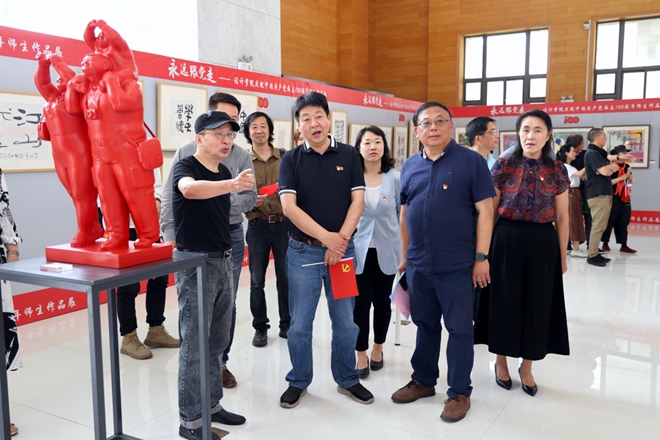 庆祝中国共产党成立100周年师生作品展开幕式在江南大学图书馆一楼大厅举行。校党委常委、宣传部部长倪松涛,校党委教师工作部部长徐锡清,图书馆与档案馆党总支书记曹瑛,学生工作部(处)副部长俞立峰,非凡娱乐