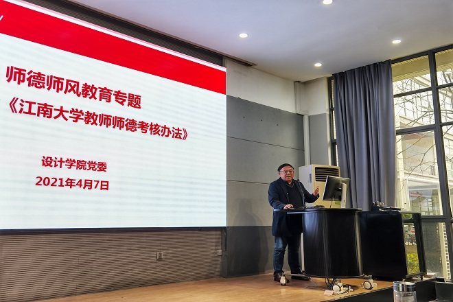 师德师风建设专题报告会在报告厅举行,院党委书记邱建平做《师德师风教育专题——解读江南大学教师师德考核办法》专题报告,学院全体教职工参加会议并聆听报告。