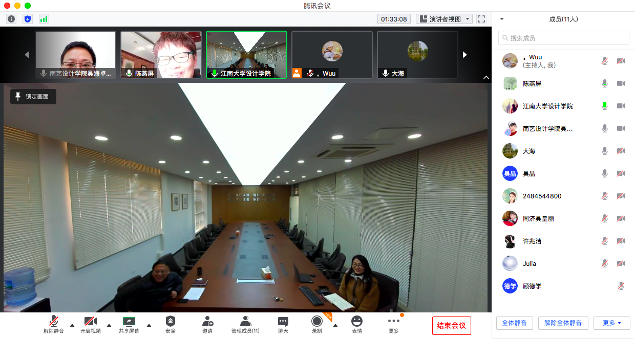 党委副书记朱琳、同济大学设计创意学院党建组织员表示,上海高校积极配合支持联盟工作,欢迎联盟高校在沪开展建党百年活动;中国美术学院设计艺术学院党委书记陈燕屏提出联盟高校以“设计”类为主,应与专业密切结合开展工作设计;苏州大学艺术学院党委书记顾德学建议结合教工党支部特色,开展教工党建工作;合肥工业大学建筑与艺术学院孙建海表示非常欢迎联盟成员走进合工大,建议联盟活动可扩大时间、地域范围;会上,南京艺术学院非凡娱乐