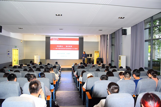 党委书记邱建平老师授课。内容分为三大模块:深入学习党的十九大精神、战“疫”给我们的思考、不忘初心永远跟党走。在第一模块中介绍了党的十九大的主要内容和成果。在第二模块战“疫”给我们的思考的讲解中,邱书记首先展示了一组疫情期间国内外数据对比图,直观的让学员感受到了新冠肺炎疫情形势之严峻,同时也深刻感受到我国在抗疫时期的的卓越表现,展现了中国在抗“疫”斗争中的中国速度、中国力量和中国精神。在第三板块,邱书记就“我是谁、我骄傲、我设计”三个小专题分别展开论述,“现在,青春是用来奋斗的;将来,青春是用来回忆的。”是习近平总书记的激励,也是青年一代跟随党的领导力争上游的指路标。课程的最后,邱书记分享了数名设院的优秀代表的经历和成就,借此激励并祝愿在座的发展对象有梦、追梦、成就梦!