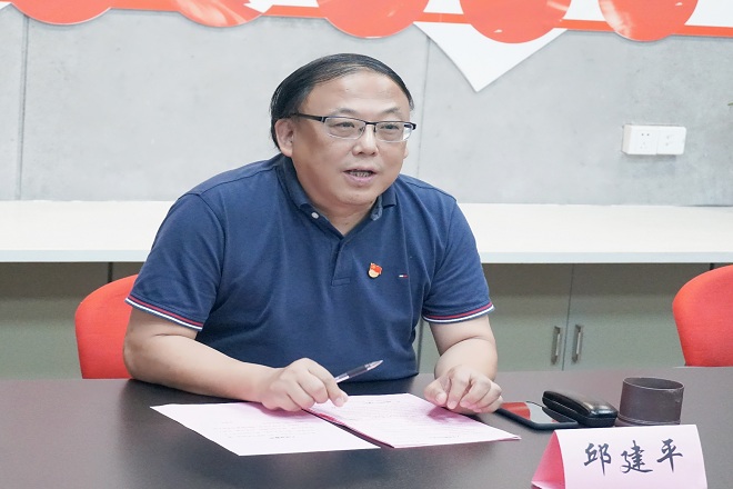 最后,党委书记邱建平做总结发言,首先代表学院党委对新党员加入中国共产党表示热烈欢迎和衷心祝贺。他表示新冠肺炎疫情发生以来,中国共产党以民为本、生命至上,带领全国人民同舟共济,共克时艰。党员同志们冲在一线、无私无畏,让爱温暖人间。加入这个光荣的组织,是荣誉,也是责任!之后,结合工作经历和学院培养目标,用七个关键词向各位新党员同志提出以下几点希望和要求:一要坚定信念,树立信心,增强信任。广大党员同志要坚定共产主义理想信念。二要谋大格局、有高格调。作为一名设计者,要胸怀天下观世界,奋力唱好属于设计人的旋律。三要努力成为一名具有国际视野、创新能力、创业精神和社会责任的高级设计专业人才与未来领导者,为设计改变中国贡献自己的力量!