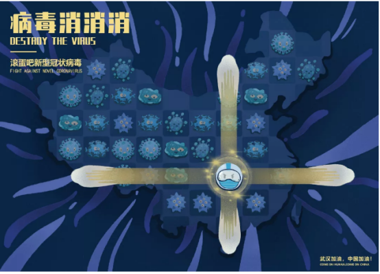 看到倡议书后,设院学子积极响应,踊跃投稿。共收到研究生作品130幅,本科生作品近500幅,学生党员作品137幅,展现了设院学子战胜疫情的坚定信心和作为设计者强烈的社会责任感。视传1603班吴立人的作品《病毒消消消》,灵感来自于消消乐游戏,希望新冠病毒也能被一线的医护人员消消消。设硕1801廖铮同学的作品《对决一线》,让人们意识到了防疫工作的紧迫性、严峻性和重要性,增强了人们战胜病毒的信心。部分优秀的作品被中国青年报、中国青年志愿者官微报道刊登。