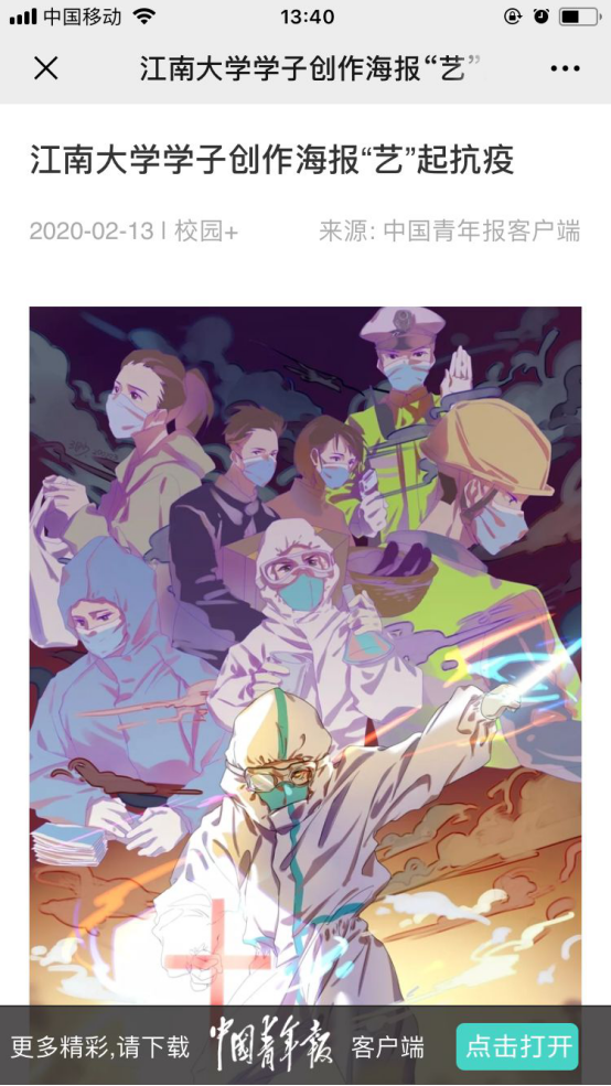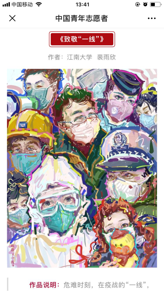习近平总书记指出,生命重于泰山,疫情就是命令,防控就是责任。对于广大青年学子来说,这就是冲锋的号角,有万钧之力。疫情当前,设计学子心系一线,以艺抗疫,以画绘心,奋战的脚步从未停歇。没有一个冬天不可逾越,没有一个春天不会来临。我们坚信,在以习近平同志为核心的党中央正确领导下,疫情终将被战胜,胜利终将会到来!