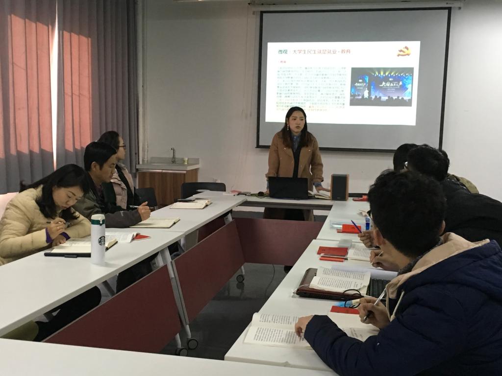 首先支部书记对前期所开展的组织生活进行了总结,讲述了收获与体会,对今后的支部的发展提出展望。接下来对党的十九大报告原文进行轮读与讨论,选取和自身关联性最密切的三块内容:坚定文化自信、提高保障和改善民生水平、提高党的执政能力和领导水平,通过读原文、记笔记、学先进、树典型、写心得等方式来透彻领会党的十九大精神,切身联系实际。