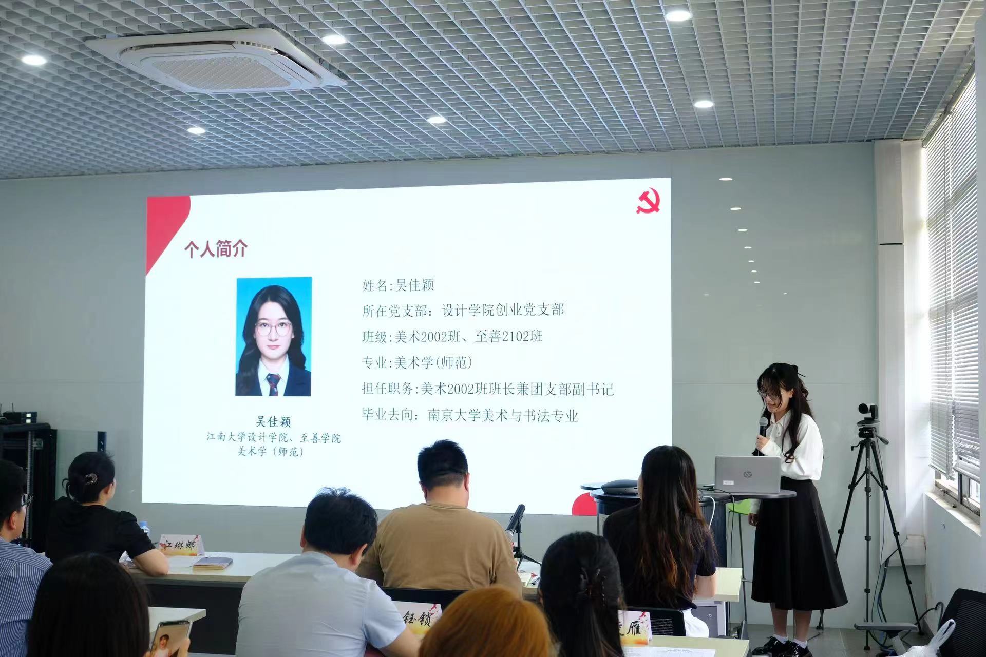 紧接着,由15名预备党员依次进行汇报。预备党员们通过生动的语言,结合真实的经历,向党组织汇报了自己在预备考察期内思想、学习和工作等方面的成长与自身存在的不足之处,表明了自己为人民服务的端正态度和为中华民族伟大复兴中国梦添砖加瓦的决心。他们中有的发表多篇学术论文并获得了国际奖项,带领中国文化走向世界;有的参加了设计类学科竞赛并荣获国家级、省级一等奖;有的在华为工业设计部门进行了3个月的实习工作;有的获得江南大学一等奖学金并保送至南京大学;有的担任班长,获得过江南大学优秀学生干部、三好学生、优秀团员称号;有的积极参加志愿服务,以实际行动服务社会,践行党的初心使命。他们表示,在接下来的生活中将继续接受党组织的培养考察,会继续按照党员的标准严格要求自己,不断加强自身对政治理论和党性知识的学习,提高自身综合素质,牢记全心全意为人民服务的宗旨,早日成为一名合格的共产党员。