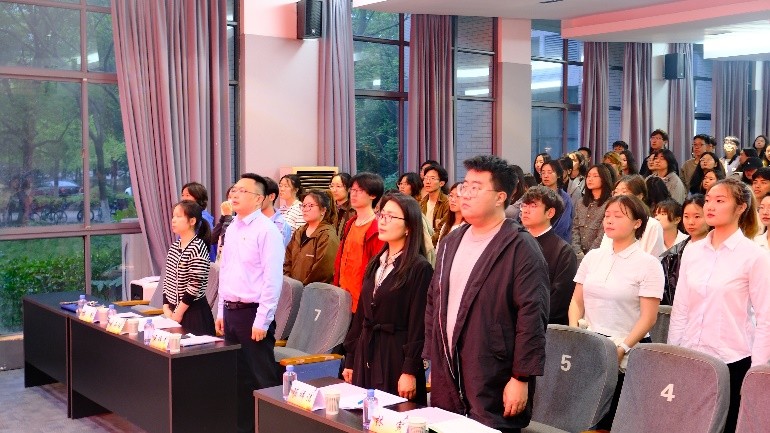 党委书记王维青,专职组织员陈祥洁,学工办主任兼分团委书记吴雨琛,党建辅导员林寅、滕影以及全体培训班学员参加仪式,仪式由培训班班主任滕影主持。