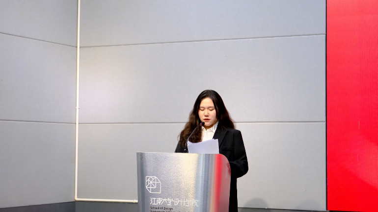 服艺2201班的殷明同学作为本期分党校培训班的学员代表发言。她首先代表全体学员感谢学校、学院提供的宝贵学习机会,后分别从思想和实践两方面,向大家分享了自己的学习感悟,并强调青年设计学子们应不忘初心,深入学习党的理论和历史,将理论与实践相结合,坚定理想信念,积极担当使命,为赓续红色血脉、创造新成就而努力奋斗,为“设计强国”贡献江南力量,为实现中华民族伟大复兴的中国梦放飞青春梦想!