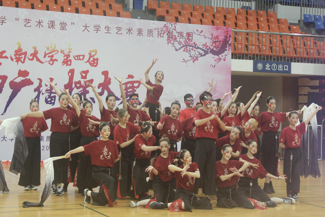 12月2日下午,由国家大学生文化素质教育基地和校团委联合主办的江南大学第四届戏曲广播操大赛在校体育馆举行,非凡娱乐 戏曲广播操队在全校15支队伍竞逐中脱颖而出,摘得本次大赛冠军,连续四年以第一名的成绩蝉联该项活动一等奖,充分展示了非凡娱乐 学子们锐意进取的精神和激情活力的青春风貌。本次戏曲广播操从前期人员严[…]