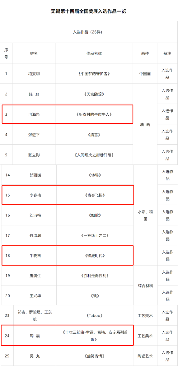 了解详情>>喜报!我院师生4件作品入选第十四届全国美展!